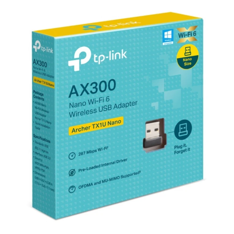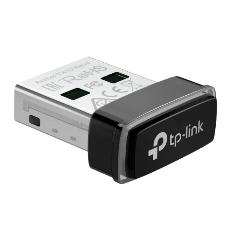 The Archer TX1U Nano AX300 is an ultra-compact Wi-Fi 6 USB adapter designed to instantly upgrade your laptop or desktop with faster, more reliable wireless connectivity. Delivering AX300 speeds, it ensures smoother streaming, faster downloads, and stable browsing in crowded networks. With its nano-size design, the adapter fits discreetly into any USB port, making it ideal for mobile users and tight workspaces. Easy to install and compatible with modern operating systems, the TX1U Nano offers improved efficiency, low latency, and enhanced security for everyday online tasks